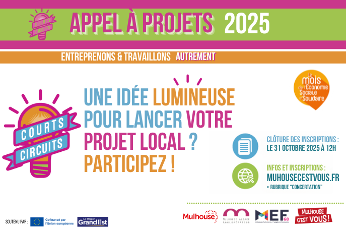 Vous avez un projet innovant, local et solidaire à mener à Mulhouse ou dans l’agglomération ? Vous avez besoin d’expertise pour vous aider à avancer ?